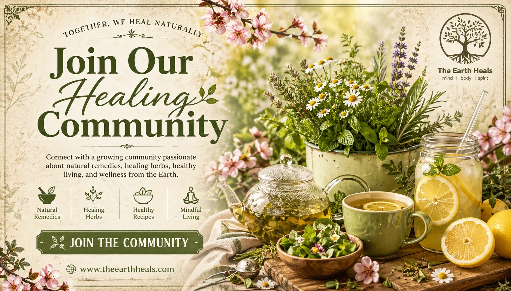 At the Earth Heals, we are dedicated to natural healing and the power of collective knowledge. We believe that true healing is a journey that is best embarked upon together, as a supportive community. At TheEarthHeals.com, we invite you to explore the transformative world of natural healing, learn from each other’s experiences, and create a vibrant community centered around holistic well-being. Join Our Community as we embark on a shared quest to heal ourselves and foster connections that inspire growth and positive change.