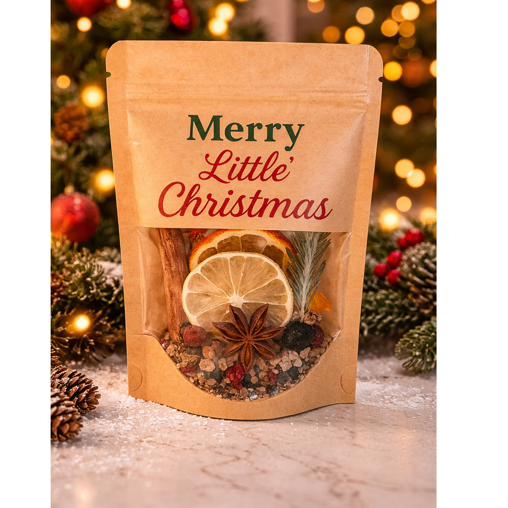 Ingredients: Star Anise, Cinnamon Stick, Allspice Berries, Lemon Wheel, Lime Wheel, Orange Wheel, Cranberries, Vanilla Bean, Pink Himalayan Salt, Nutmeg, Clove and a sprig of Blue Spruce