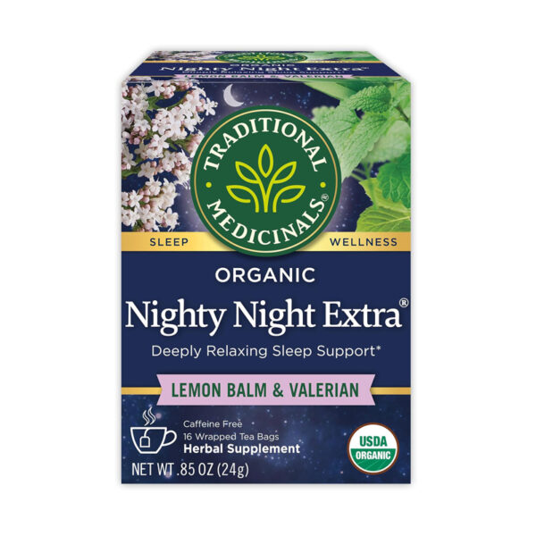 Organic Nighty Night Extra tea infuses the power of valerian root, a gentle, time-tested herbal sedative, to promote deep sleep.