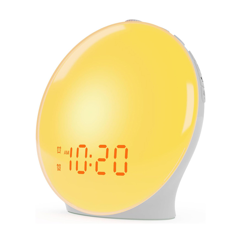 - This Sleep Aid digital alarm clock is designed for everyone, especially for heavy sleepers and kids. The sunrise simulation light with 7 natural sounds will be on gradually from 10% brightness to 100% by 30 minutes before alarm setting time. If you think 30 minutes is too long, you can set the process to 20 minutes or 10 minutes. Wake you up by nature.