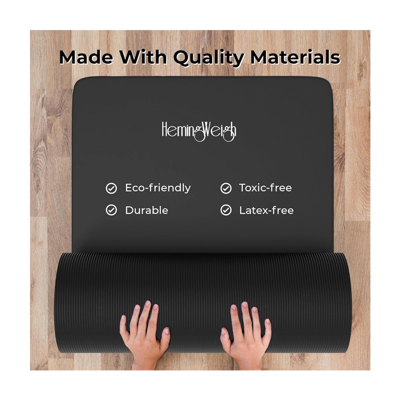 HemingWeigh 1 Inch Extra Thick Non Slip Yoga Mat – Exercise Mats for Home Workouts, Black (70″L x 23″W)